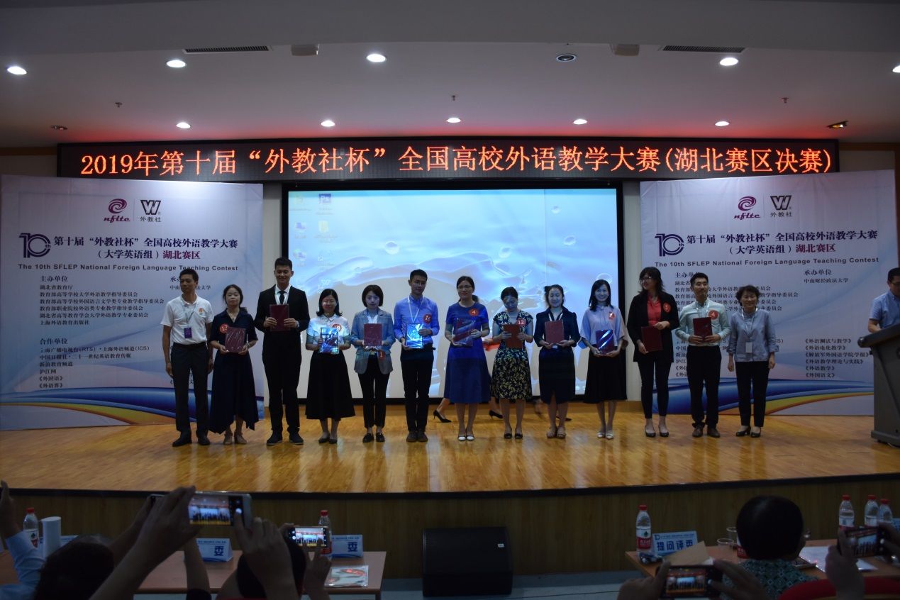21号下午1点半,颁奖典礼于文济楼2楼报告厅举行,教育部大学外语教学指导委员会委员,湖北省高等教育学会大学外语专业委员会副会长汪火焰教授对大赛进行了点评,充分肯定了本次大赛选手们的优秀表现以及承办单位的精心组织。此次教学大赛为湖北省外语教师搭建了观摩、交流学习的平台,有利于提高外语教师的教学能力和水平。大赛呈现出的新理念、新方法和新动向为湖北省高校大学英语教学模式与改革提供了新思路,注入了新的动力。(撰稿人:舒颖)