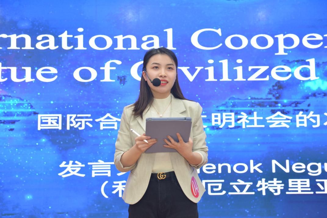 英语A组中,来自乌干达的杜书佳围绕“后疫情时代的国际合作”这一主题发表演讲,她表示国际合作是人类一切原则的基础,只有通过国际合作才能实现一个统一的目标、实现各国的愿望;英语B组中,来自厄立特里亚的和诺发表了“国际合作是文明社会准则”的主题演讲,指出当前时代是比以往任何时候都更需要国际一体化、合作和团结的时代,团结合作是文明社会的美德;英语C组中,来自美国的佳琳发表了以“前行之路”为主题的演讲,呼吁在这场严重影响全世界每一个角落的肺炎疫情中,现在比以往任何时候都更需要国际合作。