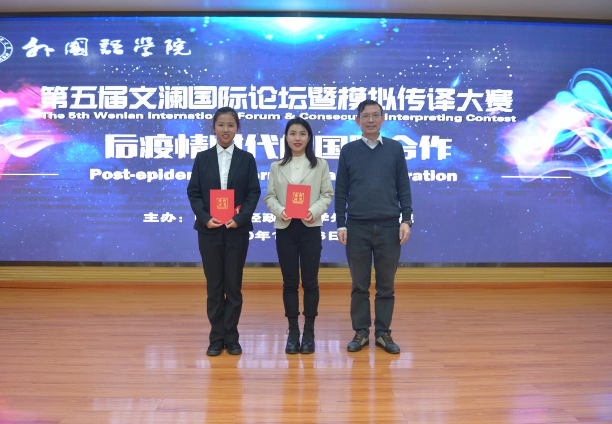 最后,主持人宣布了最终比赛结果,来自20级英语口译专业的顾冰琪和20级国别与区域研究专业的李星雨夺得一等奖;20级英语口译专业的王汝孜、莫薇薇、崔文琦以及20级国别与区域研究专业的罗鑫获得了二等奖;20级日语语言文学专业的邓泽锋、叶晴,19级英语口译专业的杨家琳以及20级通用笔译专业的李雅婷获得了三等奖。至此,第五届文澜国际论坛暨模拟传译大赛圆满落幕。