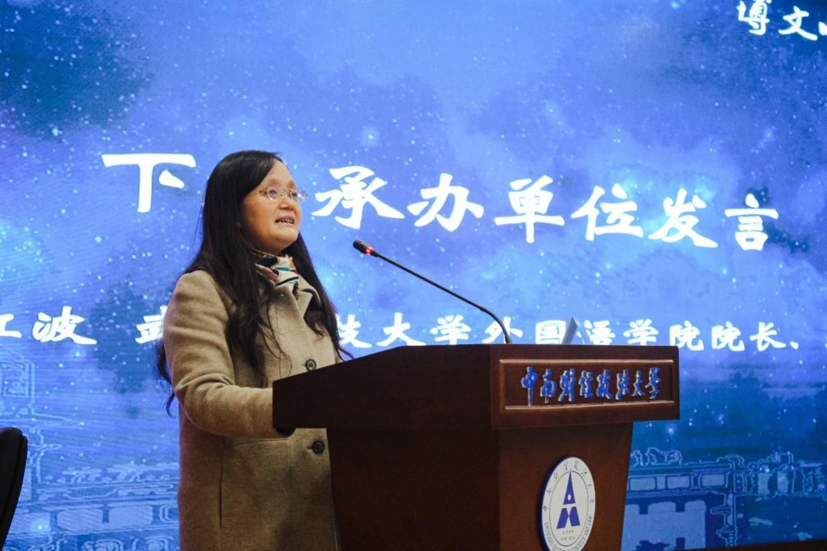 11月28日上午8:30,研讨会主会场准时开始。主会场开幕式由js33333金沙线路检测院长蔡圣勤主持。他依次介绍了线上线下发言嘉宾,和来到现场来自全国个各高校的外语学院的领导和专家,并对参加本次研讨会的各位嘉宾表示热烈欢迎。学校副校长邹进文代表学校致开幕词,对研讨会的成功召开致以热烈祝贺,热情洋溢地对学校历史、发展状况在了介绍,对外国语言文学学科尤其是翻译学科的相关情况予以肯定,并感谢线上和现场各位专家的大力支持。湖北省译协会长、武汉大学刘军平教授代表主办方致辞。他表示,在疫情的特殊时刻,各位嘉宾在云端和线下相见,非常不易。湖北的翻译事业历史厚重,本次论坛必将进一步推进翻译事业的发展。出席开幕式的嘉宾还有湖北省外事工作委员会外事翻译中心主任李华,js33333金沙线路检测科研部副部长张志刚,中国地质大学js33333金沙线路检测院长张峻峰教授,湖北省译协副会长、湖北大学js33333金沙线路检测副院长杨元刚教授,湖北省译协副会长、武汉工程大学国际交流处处长彭石玉教授,和线上线下所有主旨发言人及主持嘉宾。在现场就坐的还有东道主——js33333金沙线路检测党委书记余启军教授、副院长胡惮教授、阮全友教授、袁奇教授、副书记余向阳博士、王芹博士;会议负责人、主旨发言人之一谢艳明教授,以及翻译学科的汪世蓉教授及全体教师和研究生。简短而隆重的开幕式在热烈祥和的氛围中结束。据统计,线上和现场共计536人参加了开幕式并聆听了大会的主题报告。