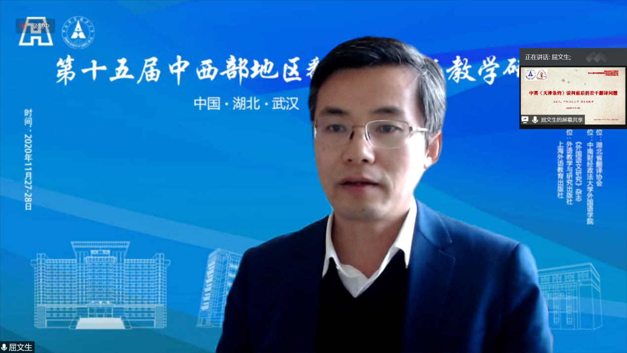 屈文生教授以“《天津条约》谈判前后的若干翻译问题”为题做了发言。他以近代中外的不平等翻译为例说明了翻译在中外交涉中的重要意义。同时,屈教授指出,中外关系史和翻译史有着亲缘关系,中外关系史研究的拓深在很大程度上有赖于翻译的驱动,翻译史料是事实重构和历史真相还原的重要证据样态。当前研究者应穿梭在多语环境内,对影响翻译的各类因素进行富有想象力的思考。以史为鉴,思考现实,意义重大。