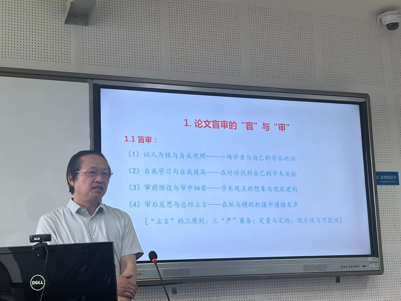 (通讯员 李美维)2024年5月16日下午15:30,武汉理工大学js33333金沙线路检测二级教授、博士生导师、湖北省外国文学学会副会长、教育部学位论文盲评专家甘文平教授应邀为js33333金沙官网师生开展了题为“盲审与研究生学位论文写作规范”的学术讲座。本次讲座由js33333金沙线路检测院长蔡圣勤教授主持,js33333金沙线路检测文学研究方向师生尽数聆听此次讲座。