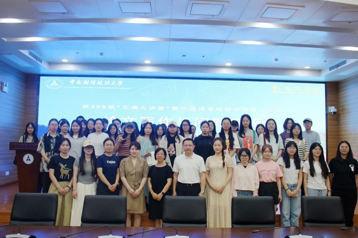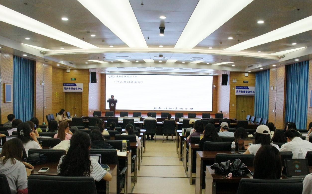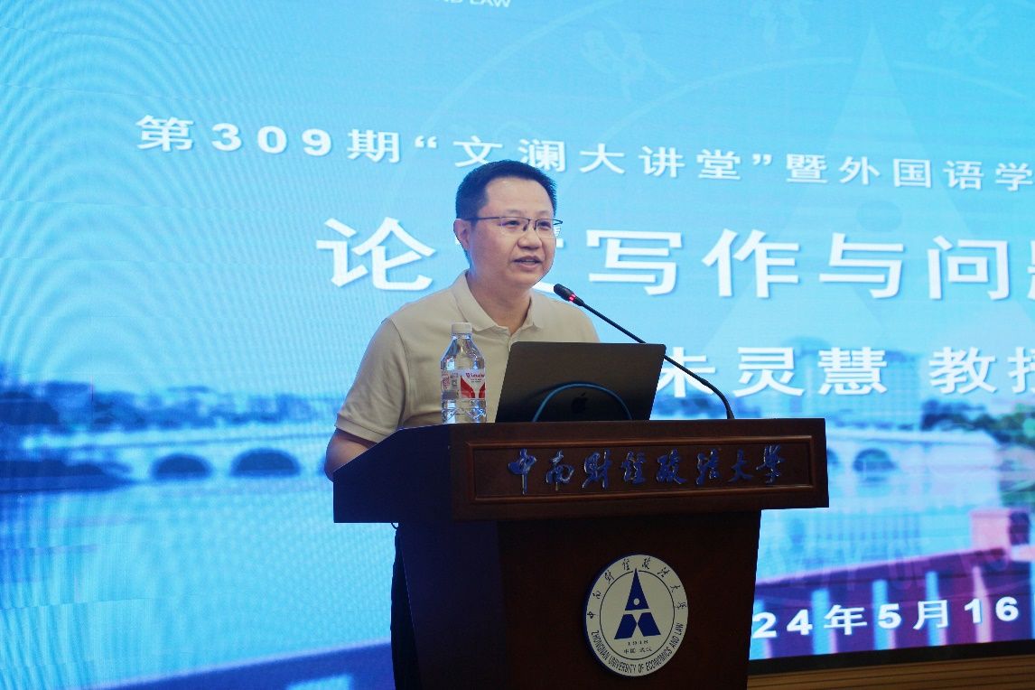 (通讯员 陶靖宁 贺倩)2024年5月16日14:30,js33333金沙线路检测第309期“文澜大讲堂”暨js33333金沙线路检测导学思政大讲堂在文澴楼同声传译会议中心开讲。本次讲座邀请学院翻译硕士导师组朱灵慧教授担任主讲人,主题为“论文写作与问题意识”。讲座由学院副院长袁奇主持,党委副书记白玉和研工办主任张冉出席活动,2022级、2023级研究生到场聆听。