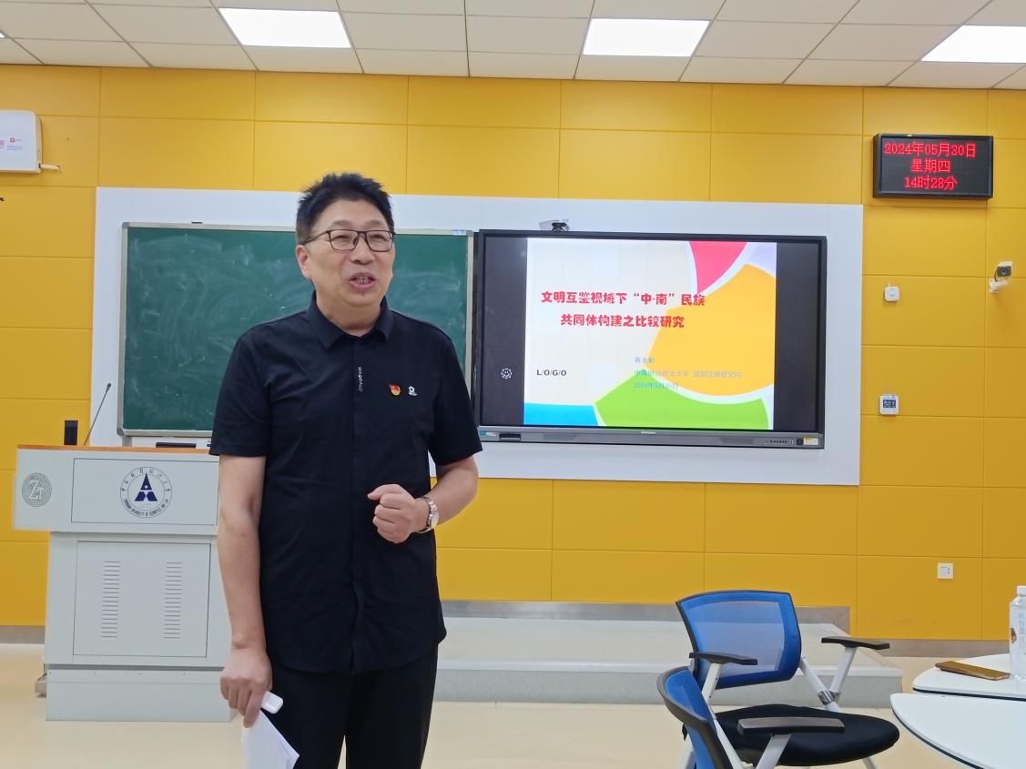 院网讯(通讯员:牟芳 图片:黄瑞洁)为深入贯彻落实党的二十大精神,推动习近平新时代中国特色社会主义思想进课堂。5月30日下午,院长蔡圣勤于文波智慧教室204讲授《文明互鉴领域下“中-南”民族共同体构建之比较研究》,本科和研究生三十名发展对象、学生工作办公室主任李涛参加学习。