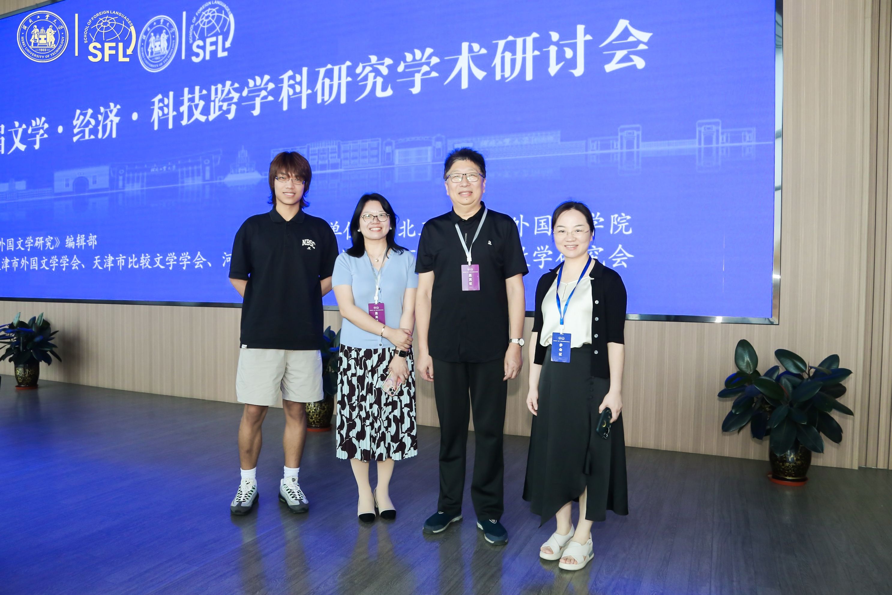 (通讯员 王峥)6月14日至16日,学院院长蔡圣勤教授率领外国文学研究团队成员李晶教授、王娜老师及研究生王峥赴天津参加第五届“文学·经济·科技跨学科研究”学术研讨会。此次研讨会由《外国文学研究》编辑部主办,河北工业大学js33333金沙线路检测承办,天津市外国文学学会、天津市比较文学学会、河北省莎士比亚学会及河北省高校外语教学研究会协办。会议吸引了逾百名专家学者参与交流与学习。