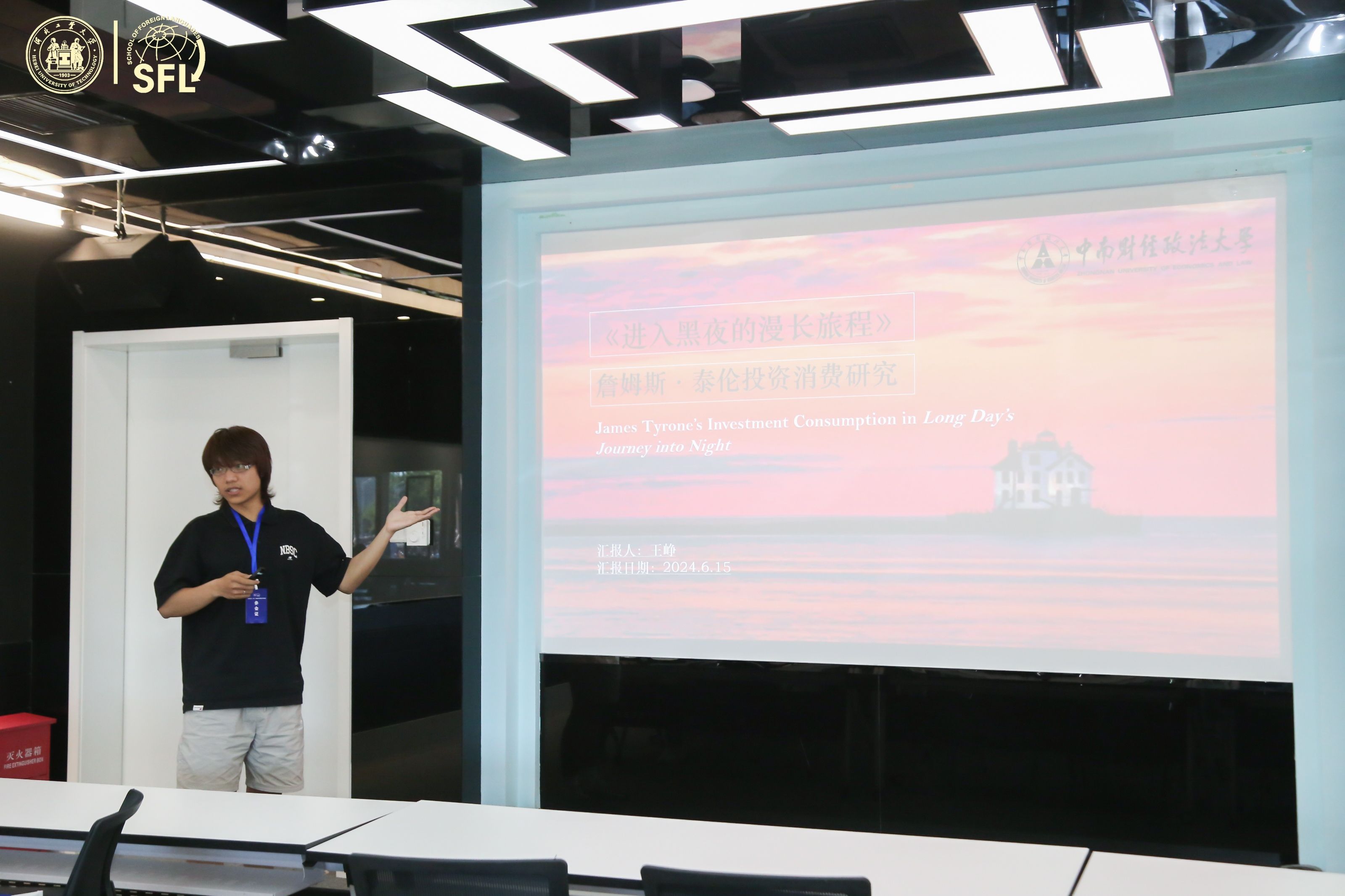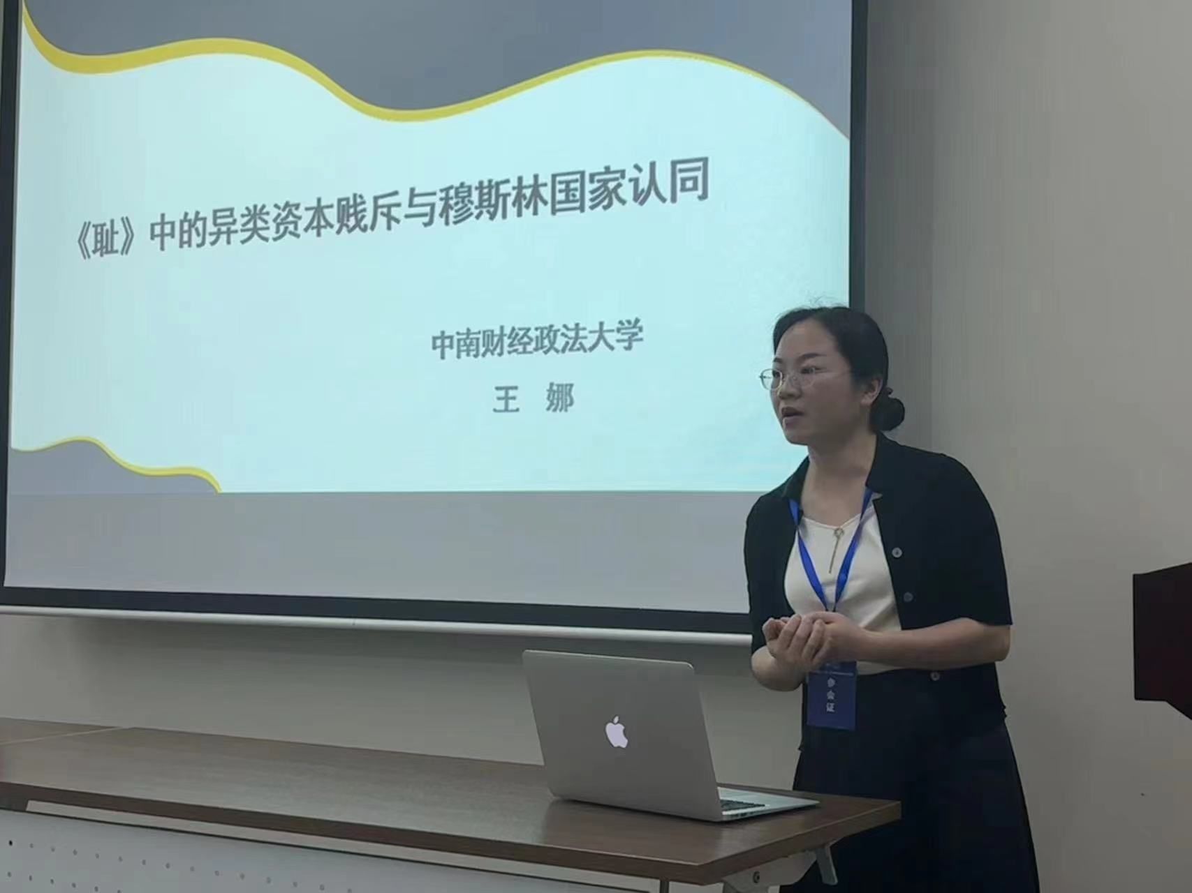 在分会场讨论与报告中,王娜老师发表了题为“《耻》中的异类资本贱斥与穆斯林国家认同”的发言,从政治与经济视角阐释了《耻》中的悲剧性苦难。此外,研究生王峥也汇报了现阶段的研究成果,其论文题目为“《进入黑夜的漫长旅程》中詹姆斯·泰伦的投资消费研究”,聚焦尤金·奥尼尔经典作品的经济解读,契合研讨会主题。