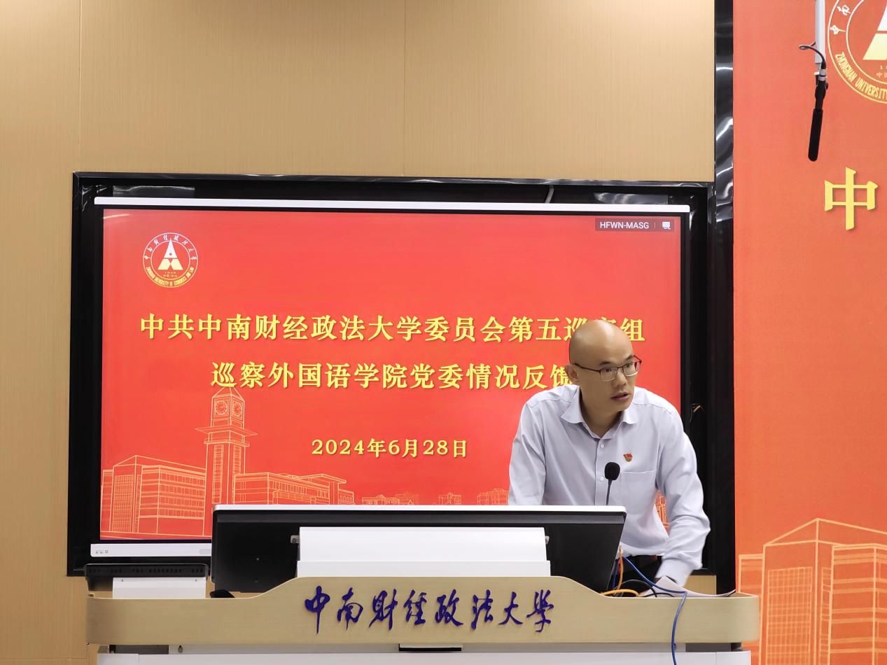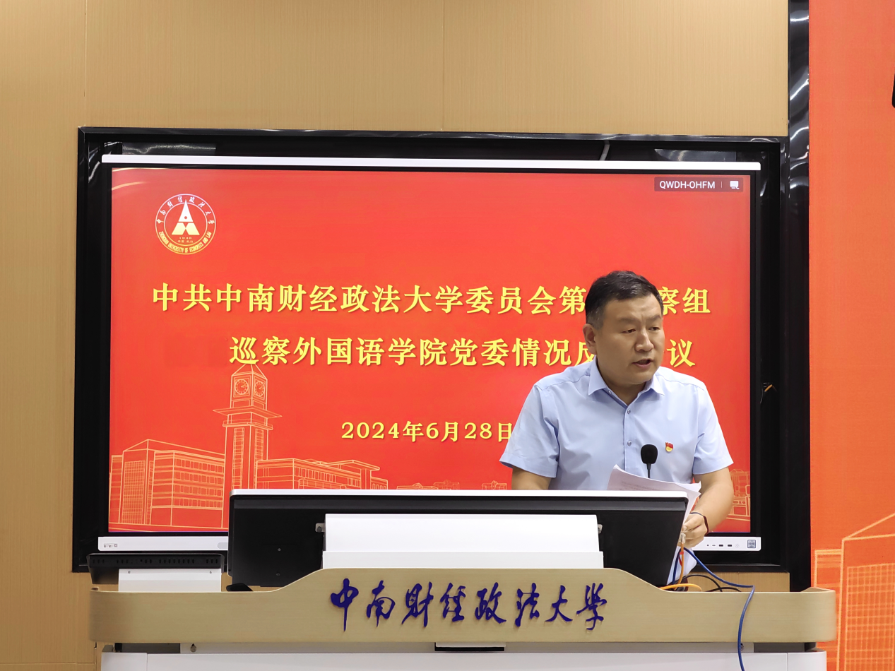 院网讯(通讯员 刘轩)根据校党委巡察工作统一部署安排,6月28日上午,校党委第五巡察组在文波楼112智慧教室召开巡察意见反馈会。校党委第五巡察组组长肖翠祥,校纪委副书记、党委巡察办公室主任张文剑,纪委办公室主任蒋涛,党委组织部副部长潘常刚,党委巡察办公室副主任夏东伟,党委第五巡察组副组长万思露、古勇,联络员余利,党委第六巡察组副组长柳正华,组员杨晨,以及外国语学院全体领导班子成员、全体行政人员和教职工代表参会。