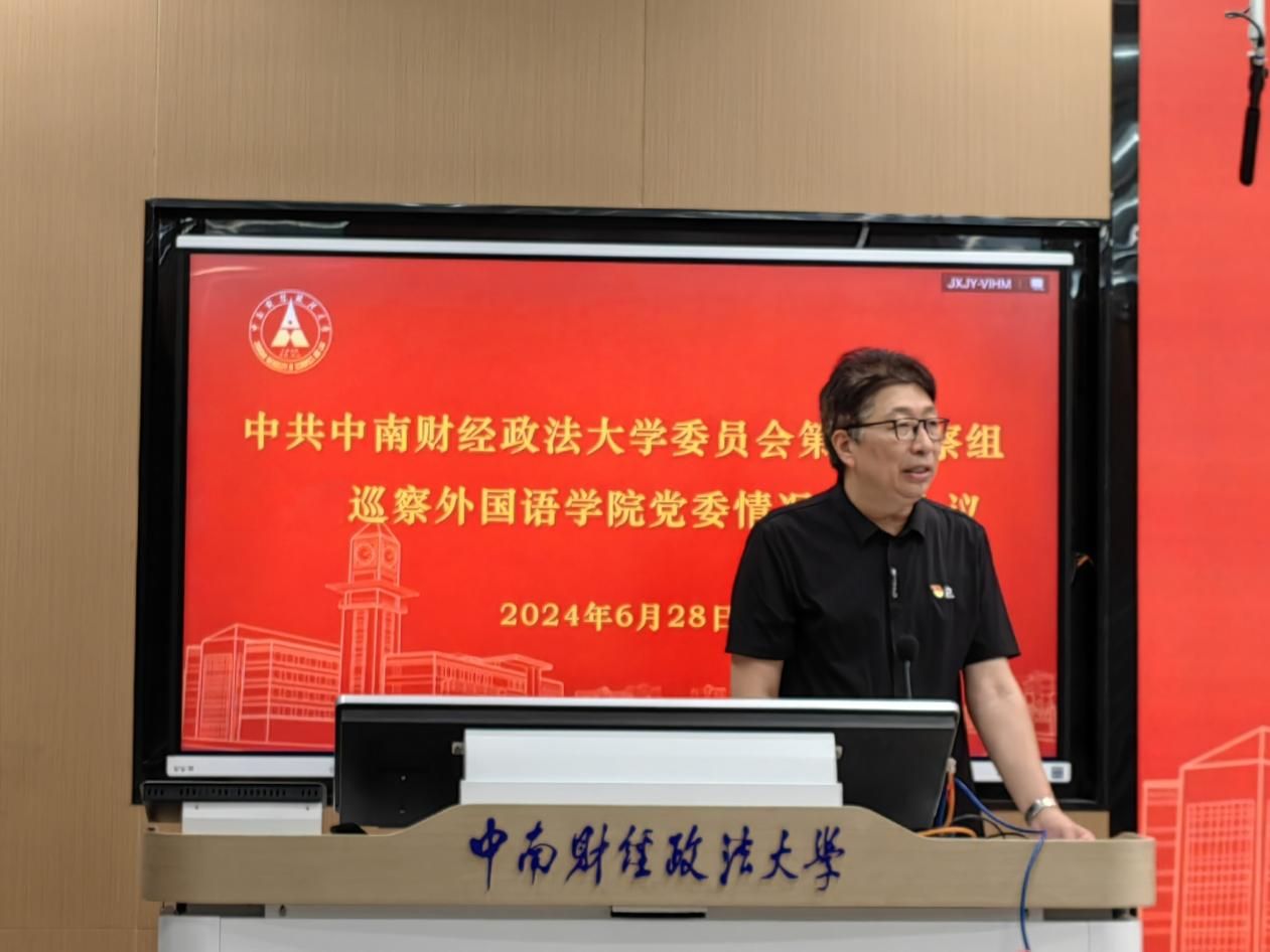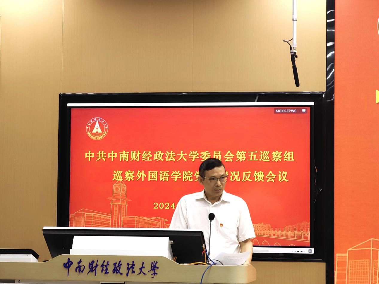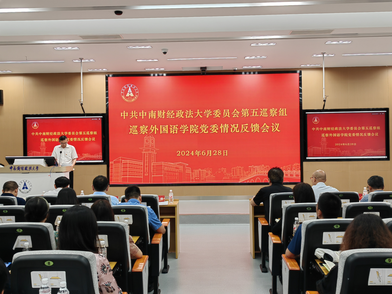 院网讯(通讯员 刘轩 摄影 袁笑雨)根据校党委巡察工作统一部署安排,6月28日上午,校党委第五巡察组在文波楼112智慧教室召开巡察意见反馈会。校党委第五巡察组组长肖翠祥,校纪委副书记、党委巡察办公室主任张文剑,纪委办公室主任蒋涛,党委组织部副部长潘常刚,党委巡察办公室副主任夏东伟,党委第五巡察组副组长万思露、古勇,联络员余利,党委第六巡察组副组长柳正华,组员杨晨,以及外国语学院全体领导班子成员、全体行政人员和教职工代表参会。