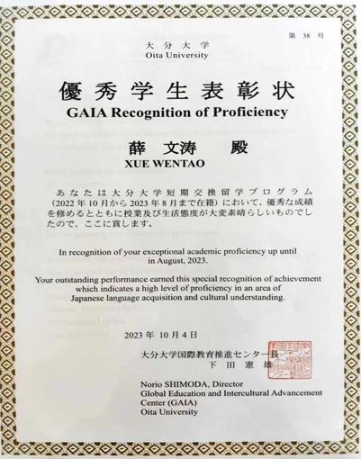 我在研二时参加了学院的校际交换项目,赴日本大分大学进行了为期一年的交流学习。让我感触最深的是大分大学的教学模式,无论是日语课程,还是国际课程,教学方式更加注重于课程的实践性与学生的主体性。个人的观点表达以及小组讨论是每节课的常态,同时有些课程加入了企业采访、实地调查、研究旅行等多样化的元素,让我体验到了与国内较为不同的授课方式。除学习以外,我还结交了许多国内外高校的优秀留学生。在与他们课内外的交流与接触中,我深刻感受到了世界的多样性以及各国文化的交融,也给我提供了一个视角去发现自己的思维局限性,从而更好地推动自己前进。